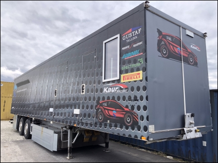 Mahutab kaks autot. Palju ruumi võidusõidul vajaminevate tööriistade, varuosade ja kõige muu jaoks. Tagaluugi jaoks omada akud ja toide ka NATO pistikuga autost. Generaator.